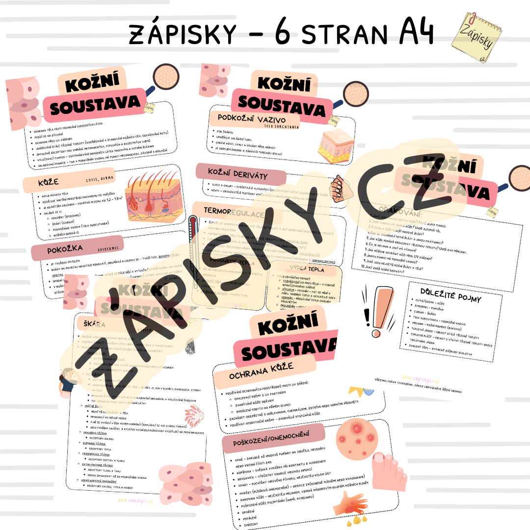 Zápisky shrnující celé téma, včetně otázek vhodných k opakování nebo ověření znalostí - celkem 6 stran A4 ve formátu pdf.