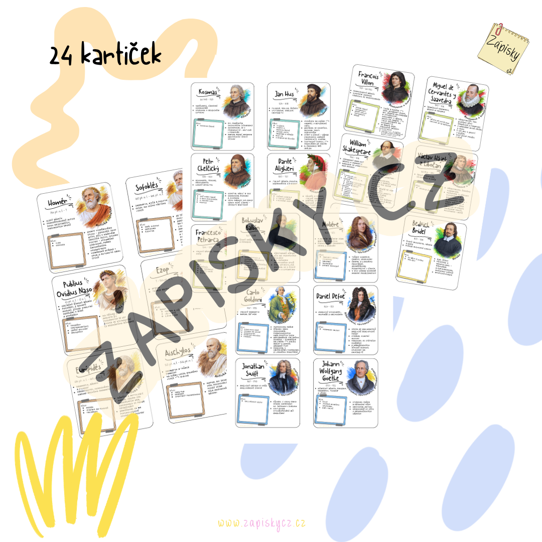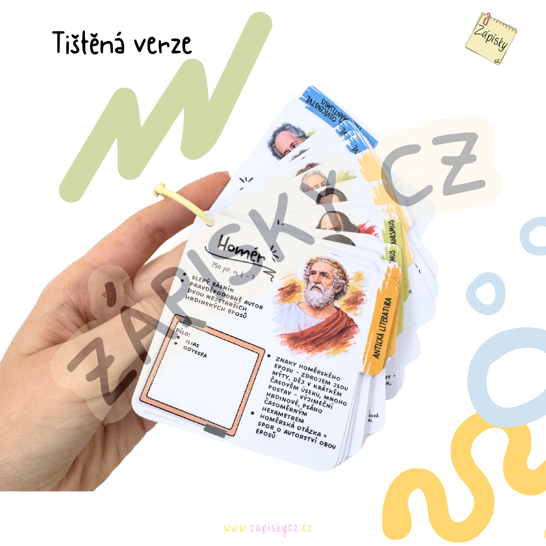 Upozornění: Digitální a tištěná verze se lehce graficky liší - tištěné kartičky mají navíc indexový štítek pro lepší orientaci a vyhledávání jednotlivých období (viz náhledový obrázek). Jedná se pouze o grafické vylepšení, obsah kartiček je u obou verzí totožný.