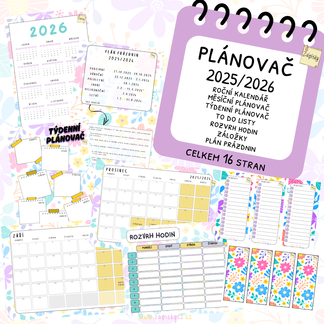 Tento praktický balíček kalendářů a plánovačů obsahuje 16 pečlivě navržených stran, které vám pomohou zorganizovat (nejen) školní rok od září 2025 do června 2026. Využít ho můžete i pro osobní plánování, jako doplněk diáře nebo jako výzdobu do třídy.