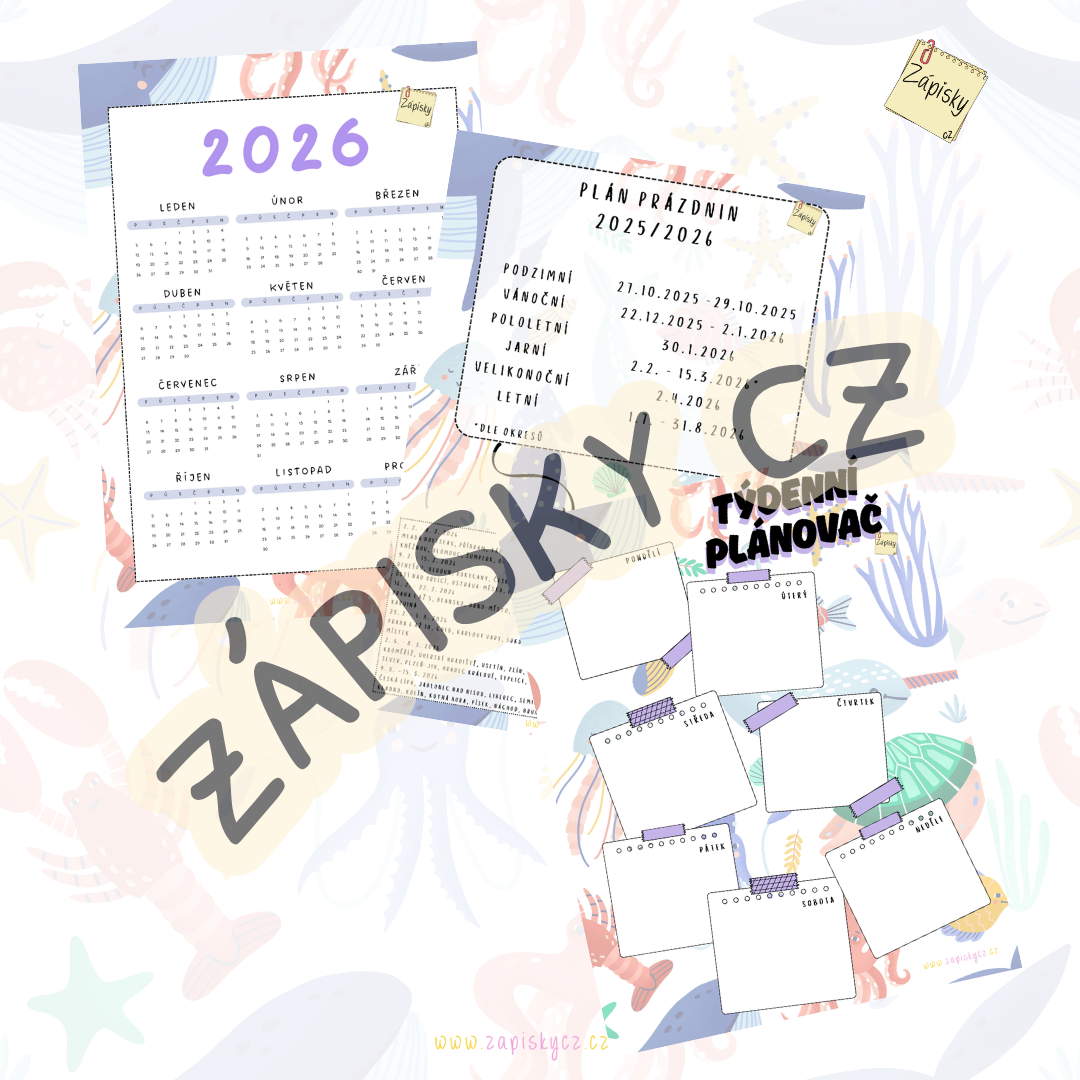 Plánovače, kalendáře, výzdoba třídy na aktuální školní rok 2025/2026.