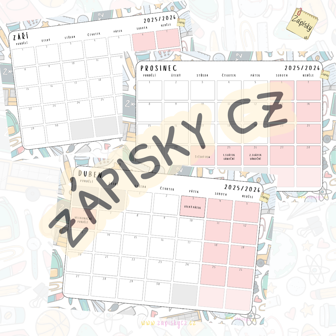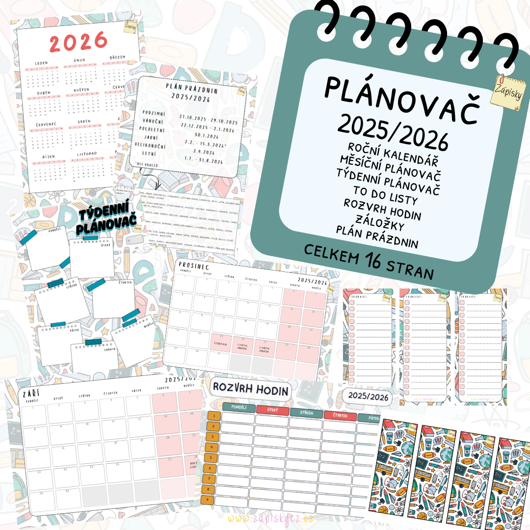 Tento praktický balíček kalendářů a plánovačů obsahuje 16 pečlivě navržených stran, které vám pomohou zorganizovat (nejen) školní rok od září 2025 do června 2026. Využít ho můžete i pro osobní plánování, jako doplněk diáře nebo jako výzdobu do třídy.