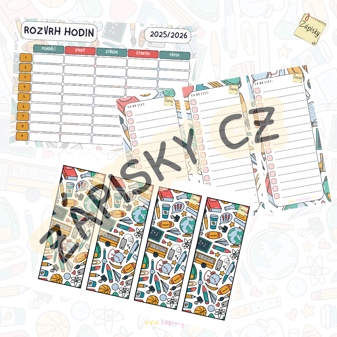 Plánovače, kalendáře, výzdoba třídy na aktuální školní rok 2025/2026.